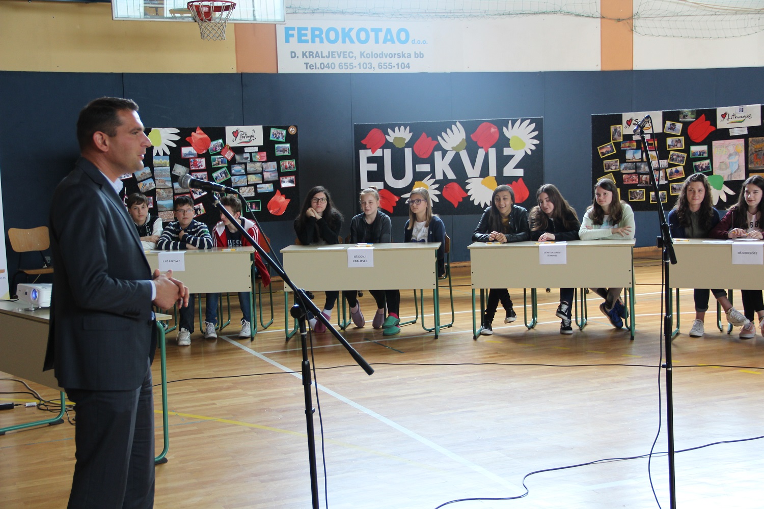 U Osnovnoj školi Donji Kraljevec ove je godine održano 15. finale EU kviza za sedme razrede osnovnih škola Međimurske županije. Svečanosti otvaranja prisustvovali su župan Međimurske županije Matija Posavec, načelnik Općine Donji Kraljevec Miljenko Horvat, pročelnik Upravnog odjela za gospodarske djelatnosti Međimurske županije i član Povjerenstva za provođenje kviza Darko Radanović, koordinatorica EDIC-a u Međimurskoj županiji Marija Stanković, ravnateljica Osnovne škole Donji Kraljevec Sandra Vlahek te viši stručni suradnik Upravnog odjela za poslove Skupštine i opće poslove te član Povjerenstva za provođenje kviza Branko Matuza.