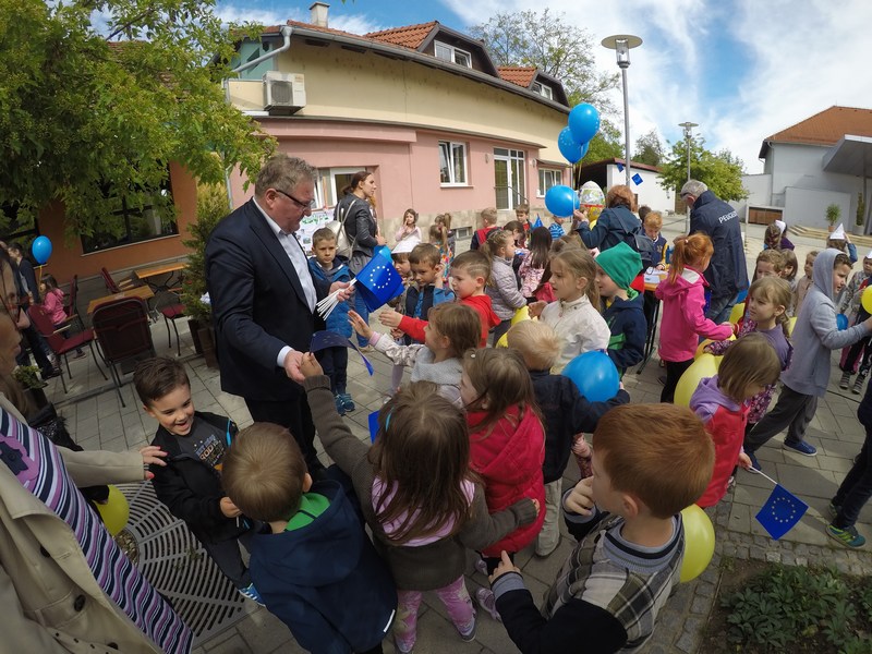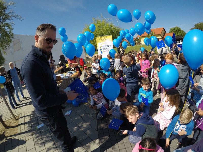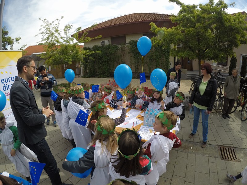 Prvi u nizu programa održan je na glavnom trgu u Prelogu gdje se na promotivnom štandu informiralo građane o EU, dok je za najmlađe organizirana radionica na kojoj su djeca crtala na temu Europe. U cijelom su programu sudjelovali gradonačelnik Preloga Ljubomir Kolarek te pročelnik UO za gospodarske djelatnosti Međimurske županije Darko Radanović. Druženje je zaključeno pjesmom i plesom vrtićkih mališana te nezaobilaznim balonima u bojama Europske unije. Također, u najsjevernijem gradu u Republici Hrvatskoj, u Murskom Središću uz domaćina gradonačelnika Dražena Srpaka te djecu iz Dječjih vrtića Maslačak, Pahuljica i Dječja, uz sportske igre, igraonicu i tematske radionice obilježen je Dan Europe na šetnici uz Muru.