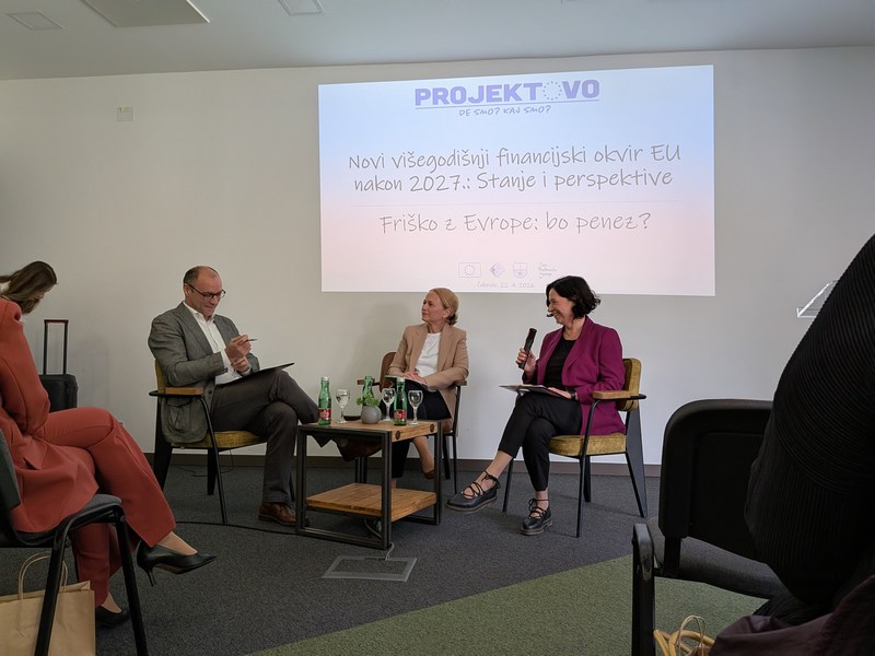 Voditeljica Predstavništva Europske komisije u Hrvatskoj Zrinka Ujević i predstavnik Ministarstva regionalnog razvoja i fondova Europske unije Lovro Noveselac predstavili su ključne novosti o oblikovanju proračuna za razdoblje 2028.–2034., najavljenim reformama fondova, konceptu „megafonda“ te ulozi regionalne razine u novom razdoblju.